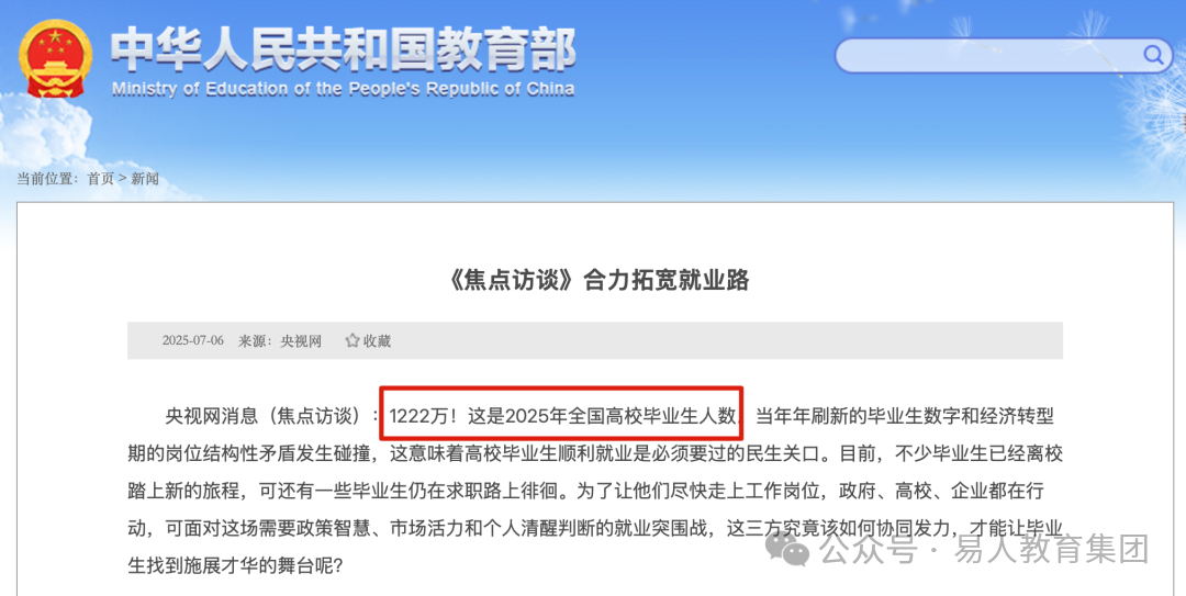 前段時間教育部公布,2025高校畢業(yè)生人數(shù)再創(chuàng)新高,達到1222萬人,同比增長43萬人。