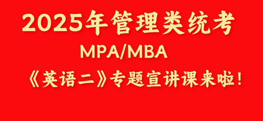 (本周六)2025年管理類統(tǒng)考MBA/MPA《英語二》備考專題宣講課來啦!!