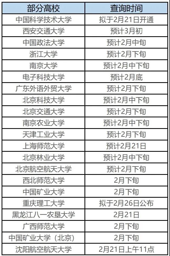 多數(shù)院校也陸續(xù)開始公布查詢時(shí)間通知: