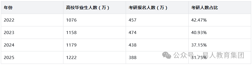 要預(yù)測26考研人數(shù),不能只看表面數(shù)據(jù),還要關(guān)注考研人數(shù)占高校畢業(yè)生人數(shù)的比例——這是更核心的參考指標(biāo)。